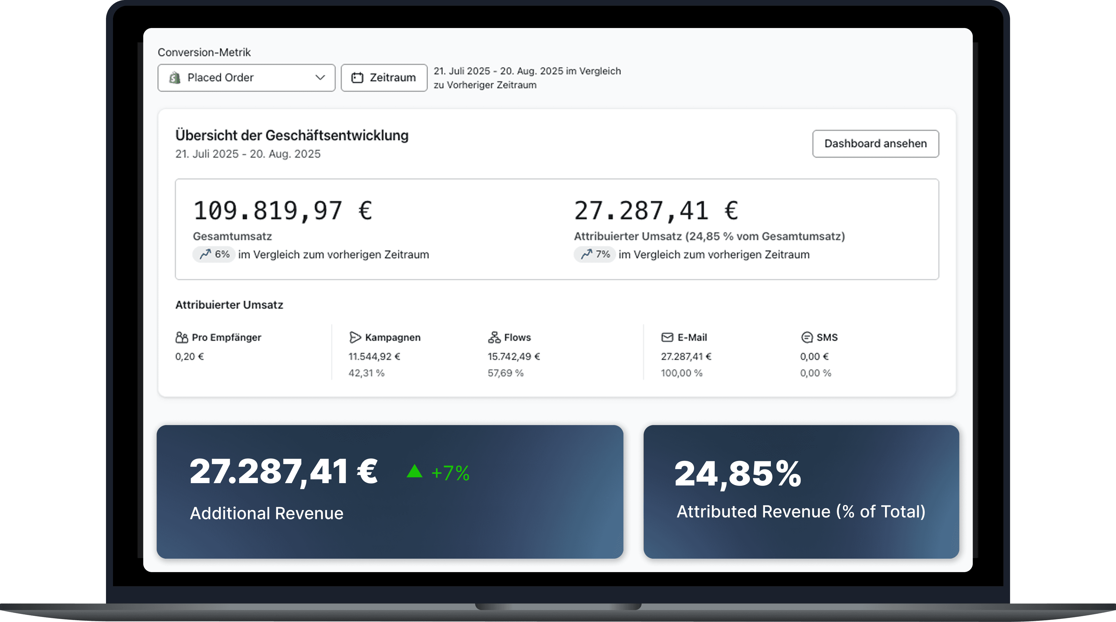 Als Shopify & Klaviyo Experten automatisieren wir Deine Customer Journey von A bis Z für mehr Conversion, höheren Customer Lifetime Value und profitable Skalierung.