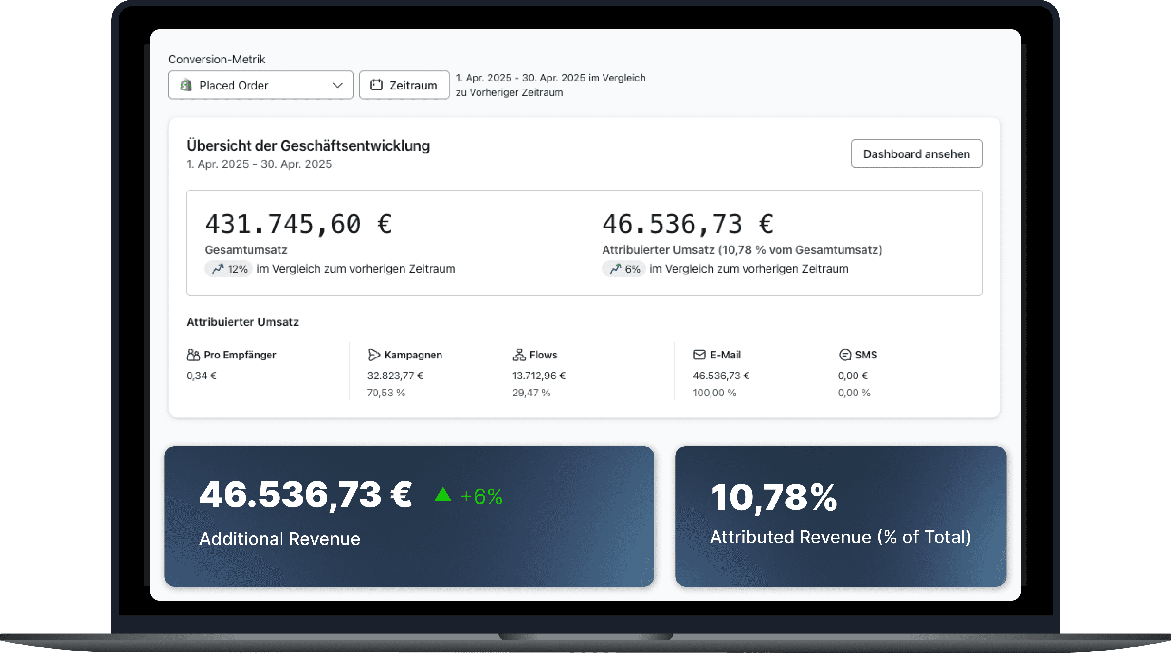 Wir helfen Dir, aus Erstkäufern loyale Fans zu machen: mit personalisierten E-Mails in Klaviyo und performanten WhatsApp-Kampagnen über Chatarmin. Ergebnis: mehr Wiederkäufe, stabilere Umsätze und ein besseres Kauferlebnis entlang der gesamten Customer Journey.